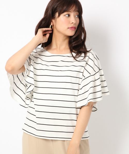 【ZOZOTOWN限定価格です】 ※2016年の商品です。 リラックス感のあるゆるシルエットのカットソー。 フレア袖がポイントでフェミニンな雰囲気♪ボリュームがあるので気になる二の腕をカバーしつつ、腕をほっそり見せてくれる効果も期待できます。 スカンツなどワイドボトムとの組み合わせが今年らしくてオススメ。スッキリ着るなら、スキニーやショートパンツ、ミニスカートでも◎。