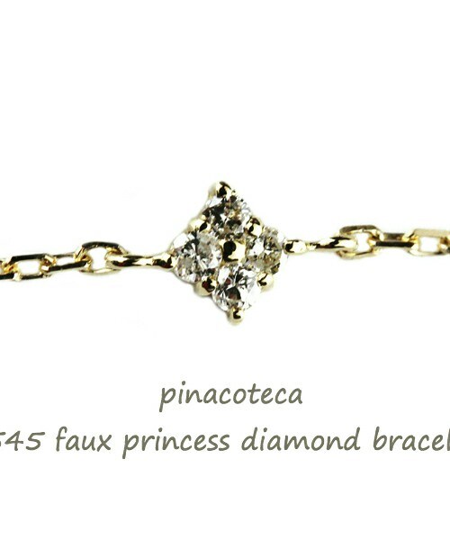 4石のダイアモンドを使って プリンセスカットのダイアモンドのようにセッティングしました。 シンプルな正方形 ダイアモンドがよく光ります。 シンプル 華奢なダイヤブレスレットは 身に着ける場所を問わずに付けて頂けます。 四角のシェイプがお花のようにも見えて手元を女性らしく際立たせます。 18金イエローゴールド製