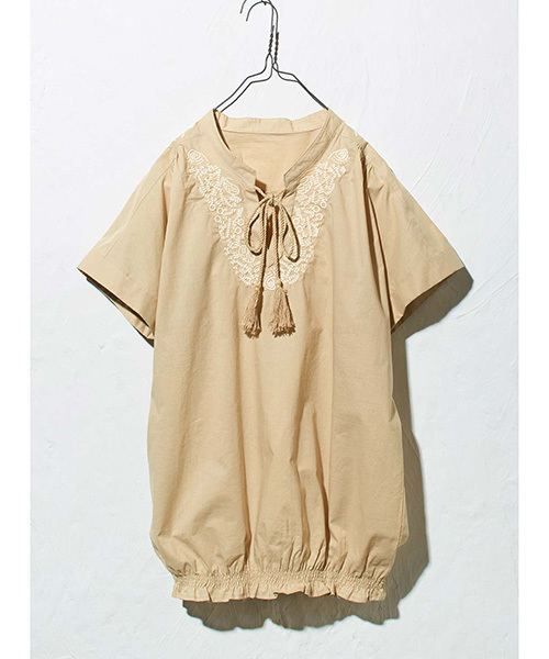 綿素材で軽く、さりげなく華やか かわいく着映える大人ボヘミアン 肌ざわりが気持ちいい綿素材がナチュラルで、胸もとの刺しゅうとタッセルが贅沢気分。一枚で着映え感抜群のトップスは、旬なボヘミアン調ながら、主張しすぎない大人っぽいデザインで着まわしやすいのが魅力。すそをゆるギャザーでしぼったふんわりシルエットで、どんなボトムスにも合わせやすく、体形カバー力も抜群です。 ★デザインについて★ 胸もとから両肩までまわり込んだ刺しゅうとヨークのふんわりギャザーで後ろ姿もかわいく。 刺しゅうとタッセルも生地と同系色で仕上げたので、大人っぽく着られます。ペイズリー風の凝った刺しゅうが豪華。 ★素材について★ 素材は肌心地のいいコットン100%。やわらかくて夏に快適。 ★プルオーバーのコーディネート提案★ 白のカラーパンツやスキニーデニムと合わせてスタイリッシュに、ガウチョパンツやスカーチョ、スカンツなどゆるいワイドパンツを合わせてカジュアルダウンさせてもバランスGood! 足元はパンプスやブーティを合わせることで大人っぽく、スニーカーやサンダルを合わせてヘルシーな装いにも。 肌寒い季節には、ロングカーディガンをさらっと羽織りシンプルコーデに。 Sサイズなどの小さいサイズから大きいサイズまで幅広いサイズ展開も魅力的。