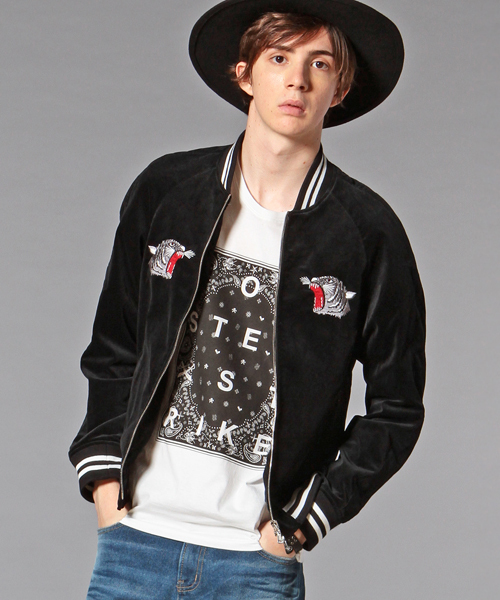 今年もっとも注目されているトレンドのスカジャンを、秋冬シーズンならではのベルベット素材を使用した、高級感漂う贅沢な一着。 胸とバックに施した「タイガー&ドラゴン」は、ギルドプライムで独自にクリエーションした、ジャパンメイドならではの本格的なオリジナル刺繍です。 漆黒のベルベット素材に、モノトーンでまとめた存在感抜群の刺繍が際立ち、ギルドプライムらしいモードで上品な仕上がり。 さらに、特別なエクセラファスナーを使用することで、一層の高級感をプラスしました。 シルエットはタイトでシャープに仕上げているので、カジュアルなデニムからキレイめなスキニーパンツまで、幅広いコーディネートで旬なアイテムをお楽しみ頂けます。