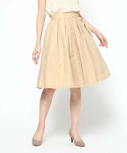 フレアなシルエットが女性らしい膝丈スカート。綿100%素材で、気温の高い季節にも爽やかな穿き心地。ウエスト後ろ部分はゴム仕様で、楽に着用していただけます。ポケット付きもうれしいポイント。