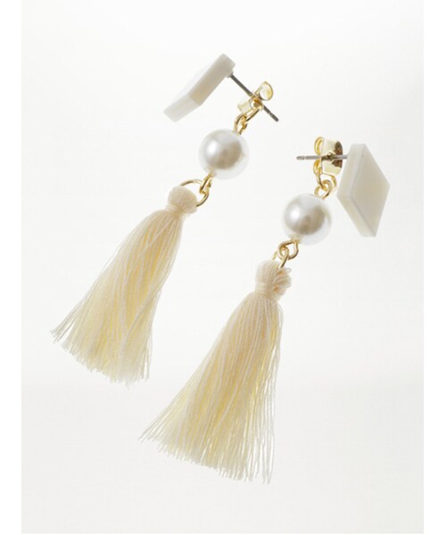 前後のギャップがユニークなタッセルとパールのコンビが珍しいピアス。動くたびに揺れるので、存在感もあり。デイリーユースでも使える個性的なデザインになっています。