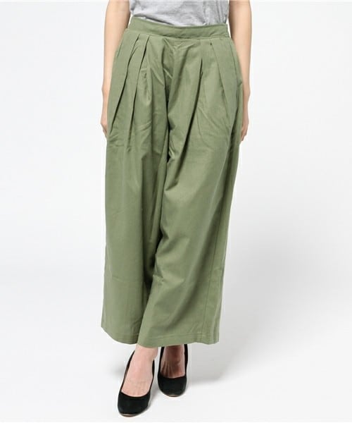 今季のNEWベーシックパンツの登場! ワイドなシルエットのくるぶし丈で重たく見えず、スタイルよく着こなせます。ギャザーではなくタック入りなので、きれいにスタイリングが決まります。ロングの羽織りとの相性も良い万能ボトムスです。 オリーブカーキがカジュアル過ぎず新鮮です。