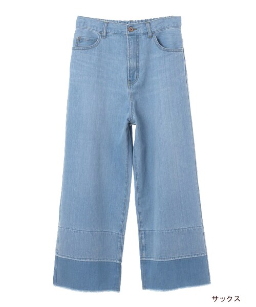 定番のデニムとはひと味違う、デザインデニム。裾のフリンジやヒゲ、ブラスト加工によってヴィンテージ感あふれるデザインになっています。7.5ozの生地でこれからの季節はさらりと履きやすいのもポイント。トップスはビスチェ×Tシャツなどのレイヤードトップスとあわせると今年らしくて◎。後ろウエストにゴムが入っているので履きやすさもばっちりです。