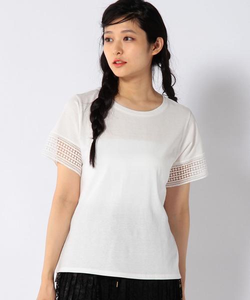 これからの季節重宝しそうなレースTシャツが登場。シンプルな身頃に、袖周りのケミカルレースが引き立つ一着。スタイルの主役にはもちろん、柄もののボトムとも相性抜群のアイテムです。 ※引っ掛けや引っ掛かりの起きやすい性質があります。着用時はバッグやベルト、アクセサリー、壁など表面の粗いものとの連続しての接触や摩擦にご注意下さい。 ※末永く愛用頂く為に、アテンションタグ・洗濯ネームを必ずご確認の上、着用又はお取り扱い下さい。