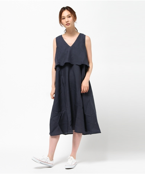 上身頃のレイヤードがポイントになったタンクワンピース。ドレープのきれいなAラインシルエットで、女性らしくゆったりと着て頂けます。合わせるバッグやアクセサリー、シューズ次第で自由なコーディネートが楽しめるシンプルなアイテム。