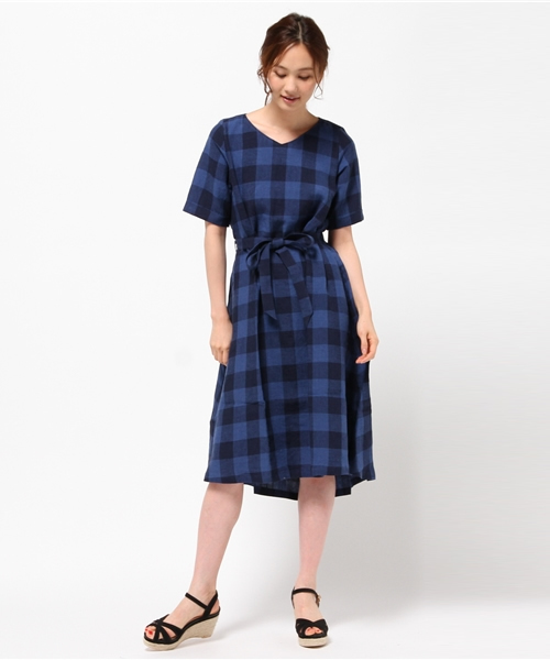 一枚でしっかりスタイルを確立してくれるブロックチェック柄のワンピース。軽くて通気性が高いリネン100%ならではの着心地の良さで、快適性が重視される夏の装いにもぴったりです。たっぷり分量を取ったフレアシルエットですが、ウエストリボンの絞り具合でお好みのフォルムにアレンジできます。