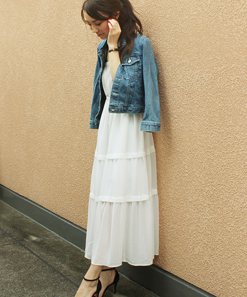 カジュアルに使いやすいティアードデザインのワンピースです。ふわりと広がるシルエットはこれからのシーズンにオススメ!さわやかなキャミソールシルエットもポイントです!※店頭及び屋外での撮影画像は、光の当たり具合で色味が違って見える場合があります。商品の色味は、スタジオ撮影の画像をご参照ください。