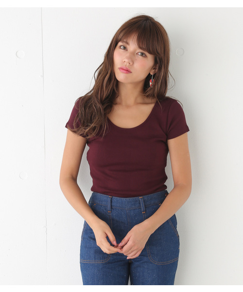 伸縮性のあるランダムなリブ編みを使用した、デイリーに使いまわせるTOPS。ベーシックな形なので、カラーで今季らしさを入れました。デニムスタイルはもちろん、幅広くデイリーに使いまわせるアイテムです。