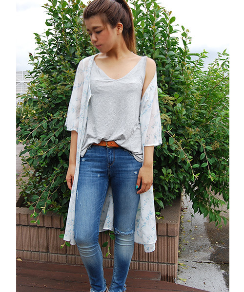 【Shelly island/シェリーアイランド】 ほんのり色付けした淡いフラワー柄を使用して、大人っぽくまとめたロングガウン。サッと羽織るだけで旬顔になれるロングガウンは これからの季節、重宝しそうなアイテムです◎ フェミニンコーデはもちろん、あえてカジュアルコーデと合わせるのもオススメ! ※画像と柄の位置が異なる場合がございます、ご了承下さい。
