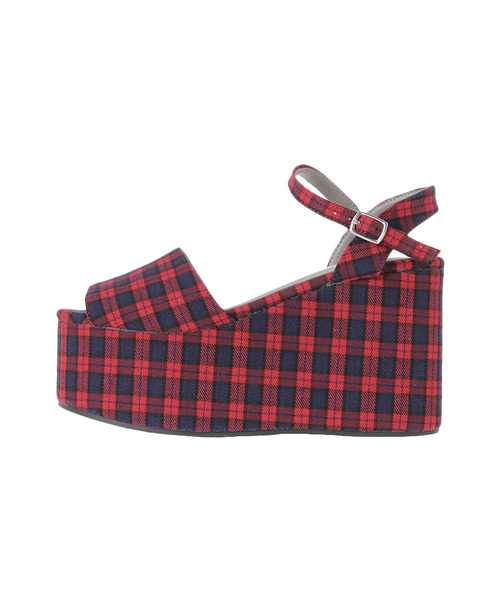 ガーリーにもカジュアルにもコーデを選ばず大活躍のチェックサンダル。厚底で傾斜は低いので疲れなくて歩きやすい。厚めのソールと足首のストラップで脚長効果もバッチリ◎