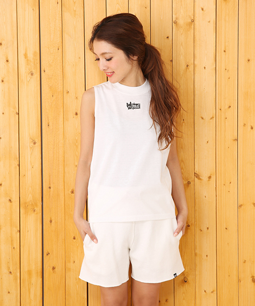 グラフィック使いが目を引くタンクトップが登場。きゅっと詰まった高めのネックラインで今っぽいバランスに仕上げました。インナーに水着やブラトップを合わせてアームホールからちらりと覗かせ、ボトムにはダメージデニムを合わせて、グランジなムードたっぷりに着こなしたい。