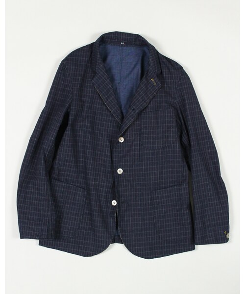 二重織生地でシャツジャケットをつくりました。古布の縞模様やチェック柄を45Rらしくアレンジした1枚。ほのかにざっくりとした生地で肉感はありながらも肌触りの良さが魅力。裏地の糸色がベースカラーとなって表にあらわれ、奥行きのある色味に仕上がっています。きれいめなテーラードデザインですが、ワーキングジャケットの仕様をあわせた45Rらしい仕上がり。肩に力の入りすぎないジャケットスタイルにぴったりのアイテムです!