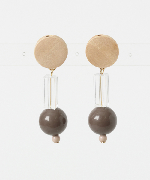 ウッドピースを使用した抜け感のあるルックスが可愛いピアス。ボール型のカラーパーツとクリアパーツを合わせたメリハリのあるデコルテにも注目。程よいサイズ感でデイリーにも取り入れやすいですよ。 ※カラー名「GRAY」の商品は、実際はブラウンに近いお色味になっております。