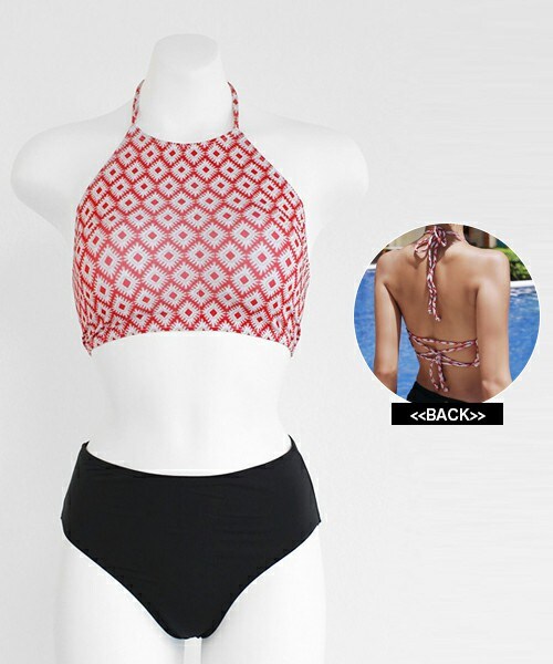 エスニックパターンとハイネックデザインで上品な大人ムードたっぷりのビキニ♡柄物でも落ち着いた色味の2色展開なのでトライしやすい!バックはレースアップデザインで後ろ姿もバッチリきめてくれます♡ ※WEARに記載してある金額と、DHOLIC通販サイトに記載してある金額にシステム都合上、稀に誤差が生じます。正しい金額はDHOLIC通販サイトに記載された金額です。