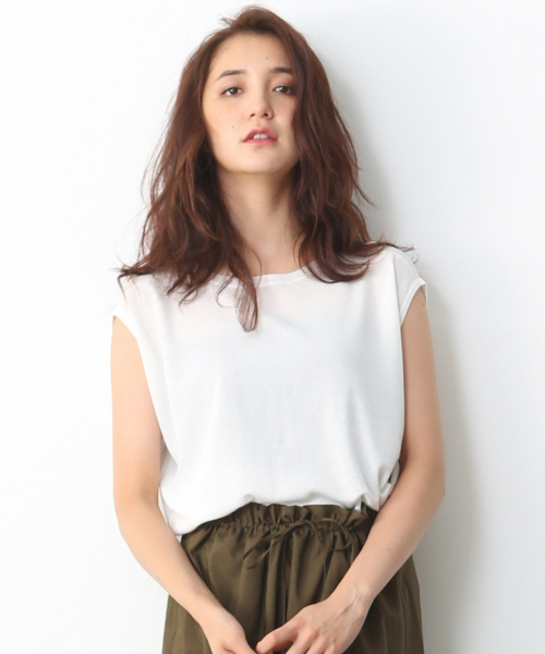 手洗い可能なウォッシャブルシリーズ。少し肩が隠れるくらいのデザインで華奢見えするノースリーブニット。透けにくいよう前身頃のみ編み方を変えています。真夏まで使えるアイテム。*こちらの商品はご自宅で手洗いして頂けます。