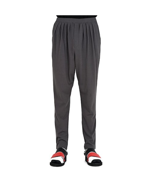 しっかりとして柔らかい天竺素材を使用した5タックスリムパンツ。 フロントにボリュームと表情の変化を持たせたイージーパンツ仕様のパンツです。