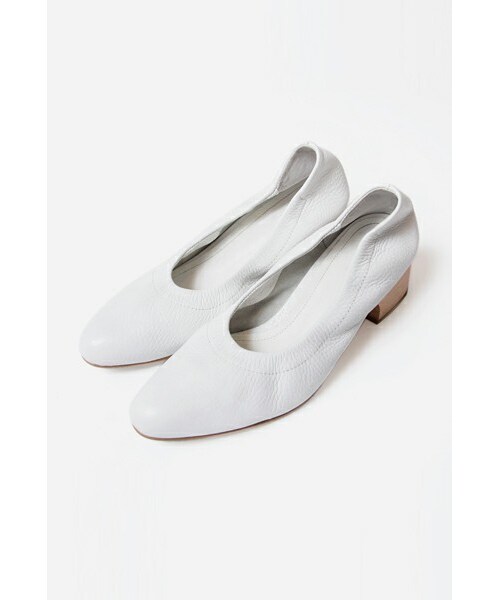 やわらかいレザーを使用している パンプスのご紹介をいたします。 履き口を深く取り、履きやすさを出しながらも 脱げにくい仕様にしています! 太目で安定性のあるチャンキーヒールは 存在感もありつつ歩きやすさも◎ ブーツとパンプスの中間の様な ぽてっとしたシルエットが魅力です♪ ◆COLOR :ホワイト ◆SIZE : 22.0~26.0cm ◆モデル着用SIZE :ホワイト/23.0cm