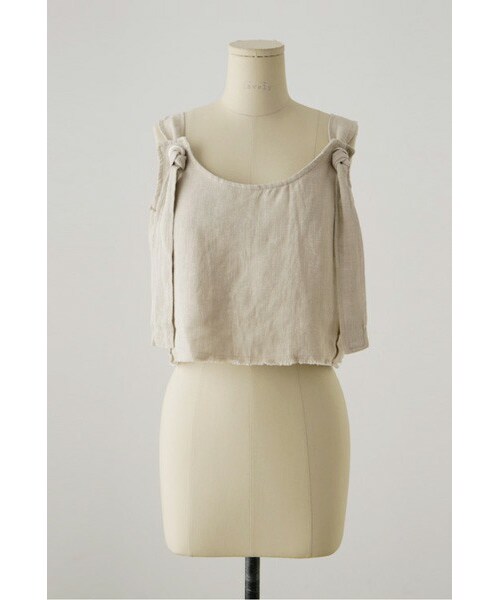 リネンのフリンジの裾がポイントの ビスチェをご紹介します♪ シンプルな色味なのでデイリーユース性も高く レディからカジュアルコーデまで幅広くマッチ♪ ショート丈でバランスがとりやすく ボトムとの相性も◎脚長を叶えてくれます! リネンのナチュラルな風合いは これからのシーズンに大活躍のアイテムです! ◆COLOR : ライトベージュ ◆SIZE : FREE ◆モデル着用SIZE :ライトベージュ/FREE