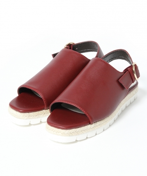 ジュートとスリットソールをコンビにしたデザインストラップサンダル。 シャープな印象に仕上げたスクエアオープントゥに、 ストラップベルトはサイズ調節だけでなく内側にゴムが付属した履き易い仕様がポイントです。 アッパーを広く覆ったデザインなので、夏だけでなく春先や秋まで長く合わせて頂けます。