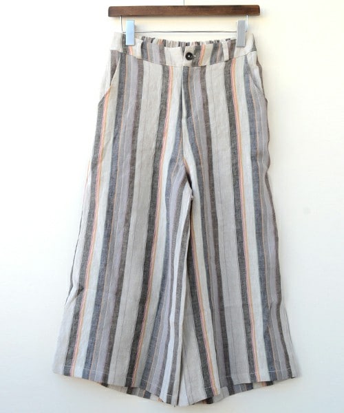 リネン100%のナチュラルパンツ。 さらっとした素材感なので夏アイテムとして活躍してくれるアイテムです。 トップスは丈長アイテムと合わせると大人っぽく着こなしていただけます。