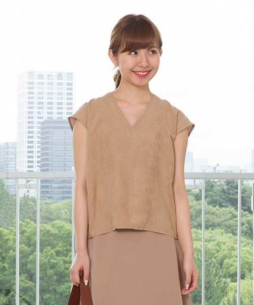 前後の起毛感を同色で切り替えたブラウス。スッキリとしたVネックに、程よいゆとりのあるシルエットが大人っぽい。落ち感のあるショルダーで二の腕のほっそり見せを狙え、女性らしいバランスで着こなせます。単品使いはもちろん、同シリーズのスカートとセットアップもお勧めです。
