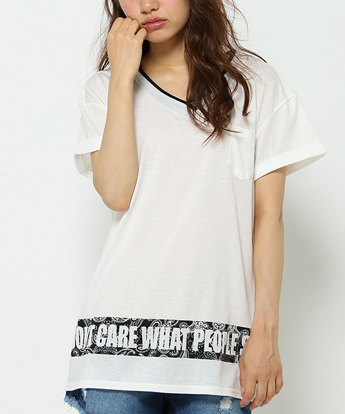 この夏の大本命でもあるバンダナ柄を裾に使ったTシャツ! 裾ロゴ入りでちょっぴりストリートな雰囲気に仕上がっています☆ デニムなどにサラッと合わせるだけで旬の着こなしが完成!