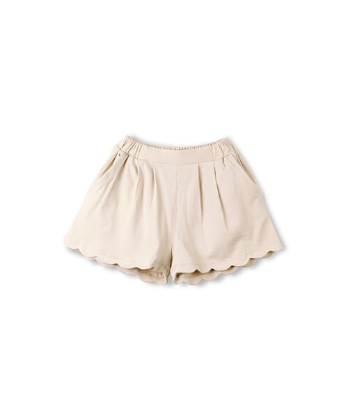 カットソー素材を使用したイージースカラップパンツです。さらっとした生地感で気軽に穿ける一枚。シックな黒と優しいピンクベージュの2色をご用意しました。