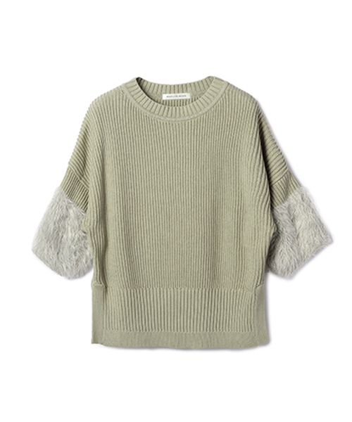 【MARILYN MOON(マリリンムーン)】 「女性らしくフェミニンな雰囲気を取り入れ、自分独自のライフスタイルを持っている洗練された大人の女性」に向けての、時代感を取り入れたスタイルの提案がコンセプトの人気ブランド。 モードとヴィンテージ感、フェミニンがミックスされた、こだわりの美しいデザインが特徴です。 コットン素材の本体に、袖を異素材で切り替えた袖コンシャスなニットトップスです。 裾は編地の切り替えとサイドには深めのスリットが入り、モード感もあるデザイン。 1枚で存在感のある着こなしを楽しめます。 ※商品の画像はサンプルのため、実際の製品とは仕様や加工、サイズ等が若干異なる場合がございます。 ※オンラインストアのみの展開となります。