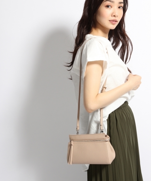 この秋マストで手に入れたいマイクロミニバッグ。 コーディネートのアクセントになるフロントジップデザインが 女性らしさを表現しつつも、シャープな印象に仕上げてくれます。 コンパクトに見えますが、マチがしっかりあるので、意外と容量があり、 お荷物が少ない日なら、このバッグだけでお出かけも可能。 内側と外側にはポケットがあり、 定期券や、カギなと細かいものも収納しやすく機能面も◎ ショルダー紐は取り外しができるので レディーな雰囲気でお出かけしたい日は、 ショルダーを外し、手持ちにしてもかわいいです。 定番のブラック・ベージュに加えて 今季注目のレッドの3色展開となります。 ※商品画像はサンプルのため、仕様に変更がある場合がございますので、予めご了承ください。 バッグ内ポケットには、ネームタグがつきます。