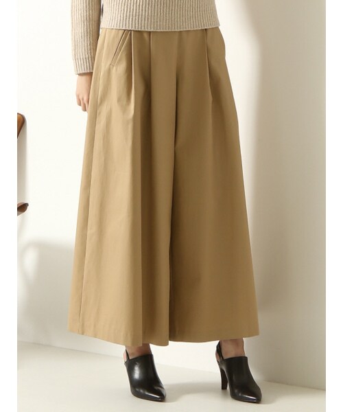 大きなタックがポイントのワイドパンツ。裾に向かってワイドに広がるのですっきりとしたラインのトップスをインするとバランスが綺麗です。スニーカーやスリッポンでラフにまとめると良さそうです。この秋も大活躍しそう。