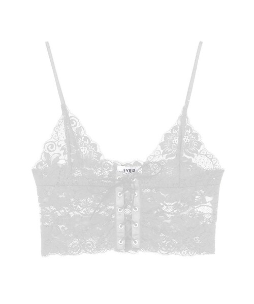 フロントにレースアップデザインを施した総レースのビスチェです。ストレッチが効いたレース生地で着心地も良く、Tシャツとレイヤードして着るスタイリングがオススメです。