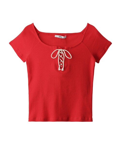 デコルテのレースアップが、ちょっぴりセンシュアルなムードを醸し出すトップス♪ ボディラインにフィットする伸縮性のあるテレコ素材&さり気なく入った縦ラインが、大人っぽい着こなしを演出♂ 広く開いネックラインでデコルテをキレイに魅せてくれるアイテム◎ ★伸縮性があります。