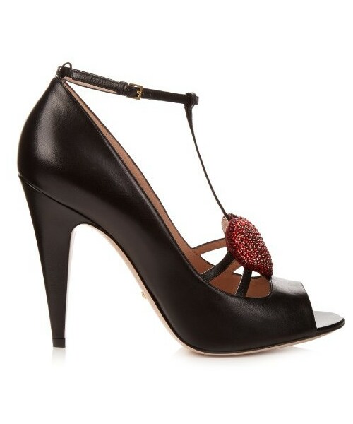 Each look from Gucci's Pre-AW16 presentation was underpinned by a spectacular pair of shoes. These black leather Molina pumps have a classic T-bar open-toe shape that's elevated with a hand-embroidered red crystal heart at the front. The vertiginous stiletto heel will elevate even the most demure counterparts.