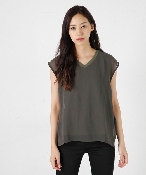 【CIFFON LAYERED TOPS】 シフォン素材のレイヤードトップス。持ちのパンツと合わせて、トレンド感あふれる着こなしが完成します。バランスよくデザインされたシフォンがヌケ感をつくり、上級者コーデがすぐに完成!