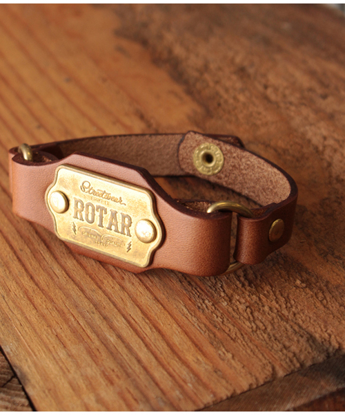 中央にオリジナルのワークプレートを配したレザーブレスレット。 時計のようなデザインでギミックの効いたアイテムに仕上げ、 遊び心のあるカラーがアクセント使いに最適。 革は、ウォレットやベルトなど、ROTAR革小物シリーズでお馴染みのブッテーロレザーを採用。 着用する度の馴染みや色落ち、風合いなど、経年変化を楽しめます。 財布やベルトと同じカラーを採用ししているので、シリーズで揃えるのもオススメ。 スナップ釦なので、着脱しやすいのもポイント