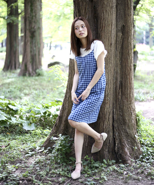 インディゴ染めをしたチェック素材が雰囲気抜群!経年変化を楽しんで頂きたい1品!キャミソール型のワンピースはレイヤードにも最適です。インディゴブルーの色目が、この時期あわして爽やかなスタイリングを楽しんで頂けるアイテムに仕上がっております。インディゴ染めを施したチェック素材は着込む事で退色の経年変化も出てきます。長年の着用でジーンズとはまた一味違った味わいを楽しめるアイテムです。D16SS-480のインディゴチェックガウンをアイテムと合して同生地でのスタイリングでお楽しみ頂けます!トレンドのワンマイルウェアとして是非ご検討頂きたいアイテムです!