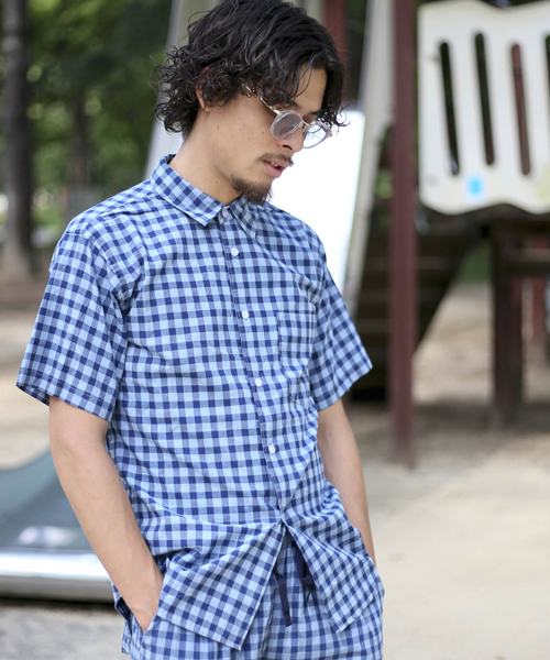 インディゴ染めをしたチェック素材が雰囲気抜群!経年変化を楽しんで頂きたい1品!ベーシックな半袖シャツのデザインをベースに仕立てた一枚はシルエットは程よく細めで綺麗なバランスで着て頂ける一枚。インディゴ染めを施したチェック素材は着込む事で退色の経年変化も出てきます。長年の着用でジーンズとはまた一味違った味わいを楽しめるアイテムです。D16SS-610のインディゴチェックショートパンツやD16SS-611のインディゴチェックジョガーパンツ等のアイテムと合してセットアップでお楽しみ頂けます!トレンドのワンマイルウェアとして是非ご検討頂きたいアイテムです!