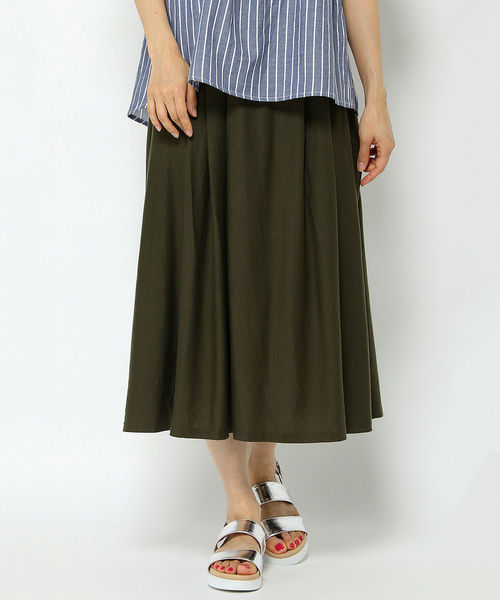 カット素材のロングスカートは、着用時のストレスもなく快適に穿いて頂けるのが魅力です。タック使いでドレープのきれいなフレアシルエットに仕上がりました。落ち着いたカラーを揃えているので、今から秋までしっかり活躍してくれます。