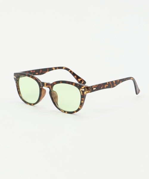 薄めカラーのレンズで、伊達メガネ感覚で装着できるサングラス☆ ボストンとウェリントンを掛けあわせたようなボスリントン型は、日本人に似合う形で幅広い方にお使い頂けますよ! 海にフェスにタウンユースにと夏の相棒として大活躍なアイテムです! [紫外線透過率] 1.0%以下(99%以上)