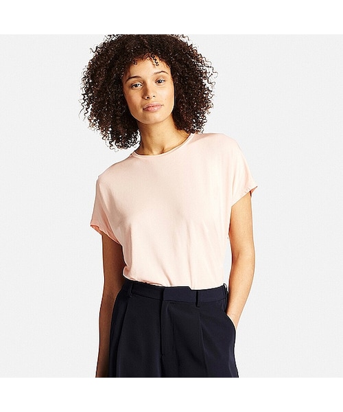 薄くて柔らかく、ドレープのあるシルエットが魅力のTシャツです。ドルマンスリーブでゆったり女性らしい着こなしを演出してくれます。シンプルな無地なので選びやすく、どなたにもおすすめ。