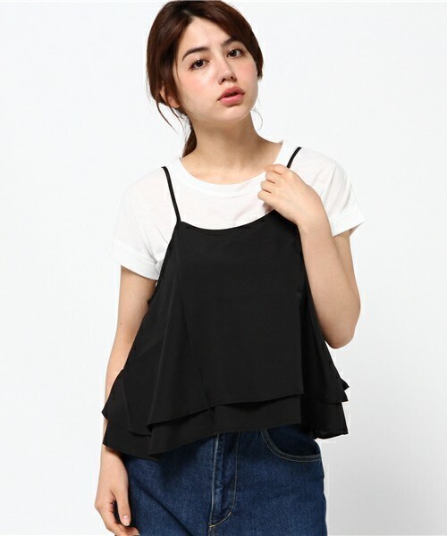 夏のトレンドコーデが簡単完成のキャミTシャツのセットです。 もちろん別々に着回しも楽しめるお得アイテム。ブラックでシンプル大人モノトーンコーデ。モカでスカンツ合わせのきれい目スタイルに。