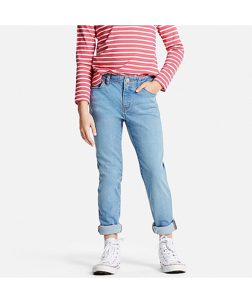スキニーシルエットが女の子らしいジーンズ。フィット感があって美脚に見せてくれるのが魅力です。細身でも動きやすいようにストレッチ性をプラス。遊び着にもぴったりな1本になっています。