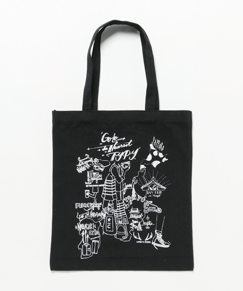 2016AW新作 チャオパニックティピーのショップがある都市にフォーカスした手書きプリントのキャンバスバッグ ユニセックスで持てるサイズです。 エコバッグ、サブバッグとしてもおすすめサイズです。