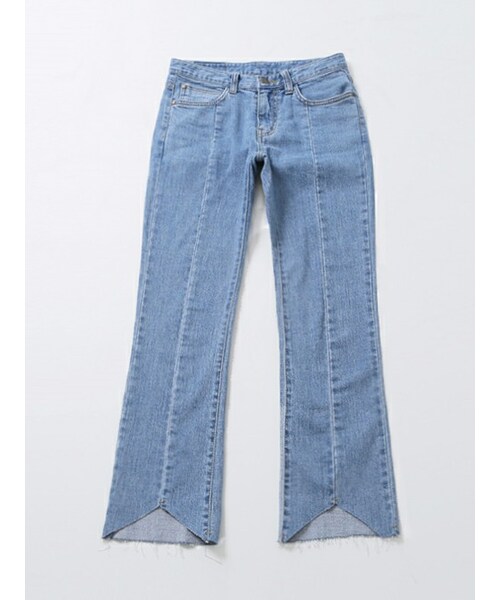 程よくストレッチが効いた デニムをご紹介いたします。 ヴィンテージデニムのような雰囲気と さらりとした肌触りと軽さが特徴♪ 裾はカットオフ、アンクル丈なので トップスや靴を問わずに合わせられます。 シルエットもスリムなので 足長効果も期待できるお買い得アイテムです★ ◆COLOR : ブルー ◆SIZE : 25,26,27,28,29 ◆モデル着用SIZE :ブルー / 26