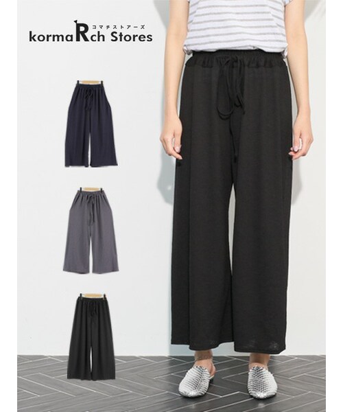 【メール便対象商品】【カットソーワイドパンツ】コーディネートを旬顔に仕上げてくれるワイドパンツは、ギャザーをたっぷり寄せたドレーピーなシルエットが女性らしいデザイン。