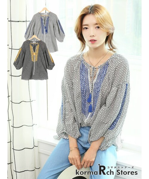 【楊柳刺繍ブラウス】スタッフに大人気のトップスが登場!フロントの刺繍がポイントのエスニックコーデが楽しめる1枚。日焼け防止になり、旅行やレジャーにも向いてます。