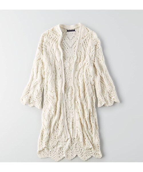 ロマンティックな透かし編みのカーディガン。 さっと羽織ってボーホーコーデの完成。 コットン65%、ナイロン35% 、コットンブレンド、レーシーなオープンステッチ(透かし編み)、オープンフロント、スカラップエッジ、ベルスリーブ お手入れ方法:洗濯機洗い