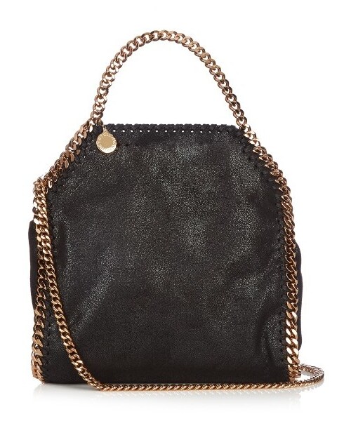 Stella McCartney's black faux-suede Falabella bag is treated for a glossy plush finish and complemented with polished gold-tone metal chains that trim the edges. It's ethically produced from head to toe - even the pink logo-jacquard lining is made from recycled plastic bottles. Swing it over everything from weekday tailoring to easy weekend separates.