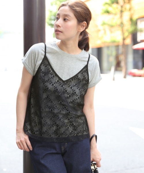 深めのVネックが上品な印象のキャミソール。 コーデのポイントになるレース2色と、合わせやすい無地の計3色ご用意しました! 肩紐で調節できるので、バランスが取りやすいのも嬉しいポイント。 シンプルなTシャツに合わせるだけで今年らしいコーデが完成します!